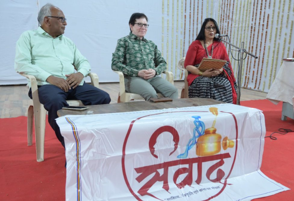 देवास। रंगपंचमी की पूर्व संध्या पर शहर की साहित्यिक संस्था ‘संवाद’ द्वारा आयोजित व्यंग्य पाठ कार्यक्रम में रचनाकारों ने विभिन्न विषयों पर अपने व्यंग्य प्रस्तुत कर श्रोताओं को गुदगुदाया और शब्दों के रंग बिखेरे। व्यंग्यकार संदीप भटनागर ने अपने व्यंग्य “मगरमच्छ और गिरगिट” के माध्यम से कहा, “आदमी अपने फायदे…