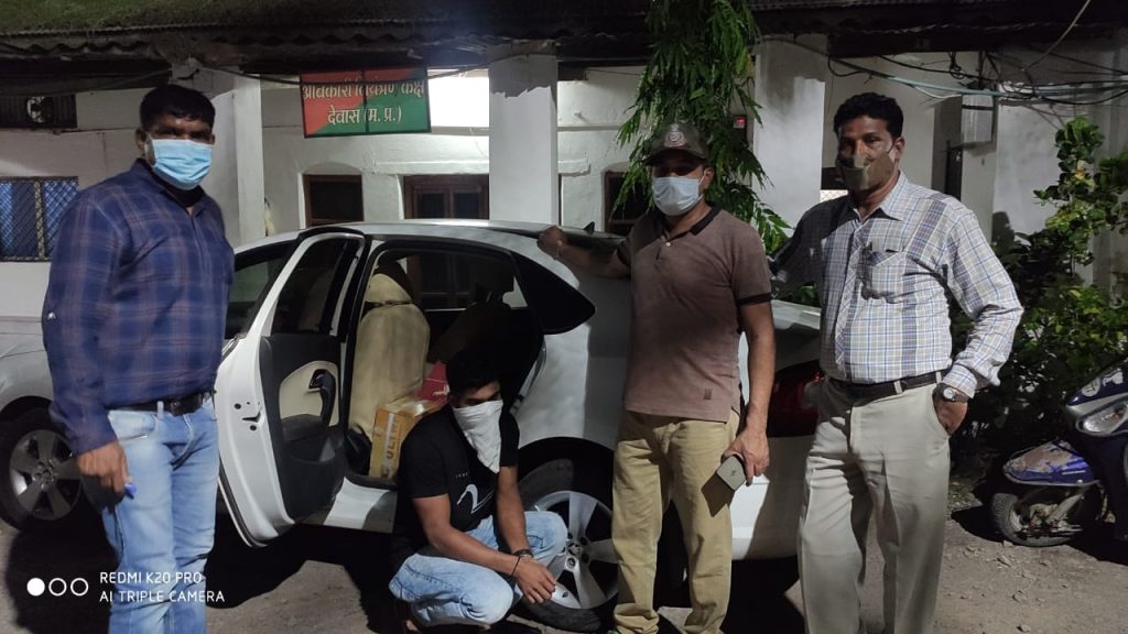 देवास 03 जुलाई 2021/ कलेक्टर श्री चन्द्रमौली शुक्ला के निर्देश पर एवं सहायक आबकारी आयुक्त श्री विक्रमदीप सिंह सांगर के मार्गदर्शन में जिले में आबकारी विभाग द्वारा अवैध मदिरा के विरुद्ध कार्यवाही की जा रही है। इसी कड़ी में आज आबकारी विभाग द्वारा कंट्रोल रूम प्रभारी श्री नागेन्द्र सिंह जादौन के नेतृत्व में आबकारी उपनिरीक्षक प्रेम यादव द्वारा स्कोडा कार को रोककर विधिवत तलाशी ली गई। कार से 03 पेटी विदेशी मदिरा बरामद हुई,जो चालक संदीप कुवाड़िया निवासी मोती तबेला इंदौर द्वारा अवैध रूप से संग्रह कर परिवहन किए जाने से चालक के विरुद्ध मध्य प्रदेश आबकारी अधिनियमम1915 की धारा 34(1) (क)के तहत प्रकरण पंजीबद्ध कर विवेचना में लिया, उक्त कार्यवाही में आबकारी मुख्य आरक्षक राजाराम रैकवार एवम् चालक अरविंद मसीह का विशेष योगदान रहा। जिले आबकारी विभाग द्वारा इस प्रकार की कार्यवाही लगातार जारी रहेगी।