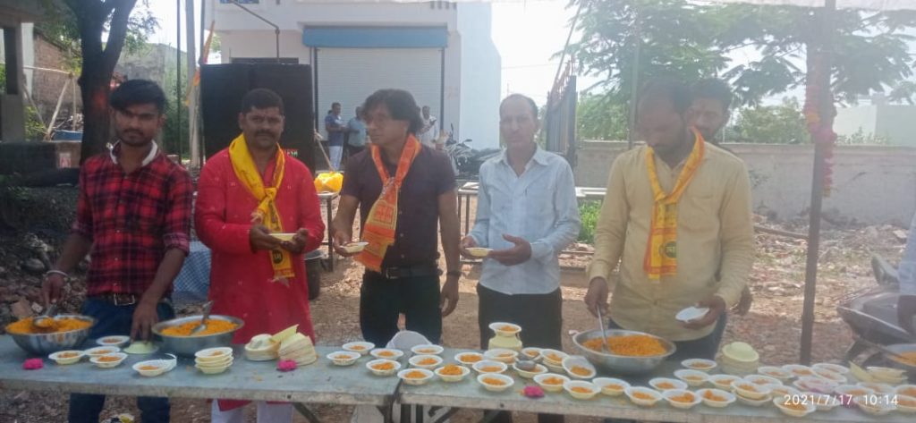 आज उज्जैन में चिंतामन गणेश मंदिर के समिप खेड़ापति कंकड़ समिति द्वारा बजरंगबली की पूजा अर्चना के पश्चात समस्त दर्शनार्थियों को प्रसाद वितरण किया गया कार्यक्रम में मुख्य रूप से श्याम जायसवाल ओर डॉ राठौड़ ने स्वयं प्रसाद वितरण किया ओर लोगो से इस प्रकार के कार्यक्रम में अधिक से अधिक भक्त आये ऐसा आग्रह भी डॉ राठौड़ द्वारा किया गया खेड़ापति समिति द्वारा समय समय पर इस प्रकार के धार्मिक आयोजन किये जाते है जो कि भारतीय संस्कृति को आगे बढ़ाते है डॉ राठौड़ ने उज्जैन की सभी धर्मप्रेमी जनता व भक्तों से निवेदन किया कि ऐसी संस्थाओं को आगे आकर आर्थिक सहयोग भी करे जिससे इस प्रकार के कार्यक्रम अधिक से अधिक हो और हिंदुत्व ओर हिन्दू संस्कृति की पहचान अच्छे से समाज मे जाए जिससे आने वाली नई पीढ़ी जो हमारी संस्कृति को भूलती जा रही है उन्हें भी इसका ज्ञान मिल सके