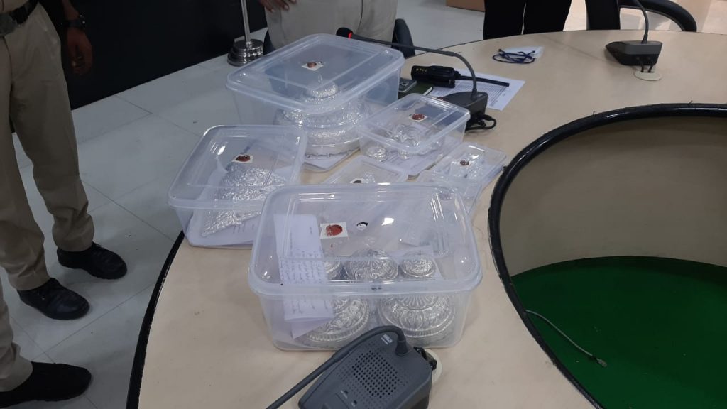 तारीका-ए-वारदात:- आरोपी द्वारा मंदिर की पूर्व में रेकी कर मौका पाकर रात्रि में मंदिर में प्रवेश कर भगवान, माताजी के चांदी के छत्र, मुकुट, अन्य कीमती सामान, दानपेटी आदि में से चोरी करना। जप्त मश्रुका :- माता जी के छोटे बड़े चांदी के छत्र कुल- 11 नग, चांदी के छोटे-बड़े मुकुट कुल- 03 नग, चांदी की चरण पादुका 01 जोड, चांदी की पायजेब – 01 जोड़ी, आर्टिफिशयल (क्रत्रिम) छत्र छोटे-बड़े कुल-05 जप्तशुदा मश्रुका की कुल कीमत लगभग 01 लाख रूपये है।