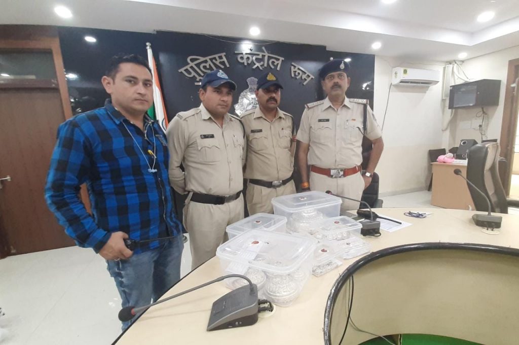 स्थित सप्तश्रृंगी (दशा माता) मंदिर में अज्ञात आरोपी द्वारा मंदिर में घुसकर मंदिर के दरवाजे का ताला तोड़कर माताजी का चांदी का एक बड़ा छत्र, माताजी का चांदी का एक बड़ा मुकुट, चांदी की पायजेब एक जोडी, चांदी की चरण पादुका एक जोड़ी, चांदी के 02 छोटे मुकुट, चांदी के 08-10 छोटे छत्र, पांच नग आर्टिफिशियल छत्र आदि चुराकर ले गया था, मंदिर के पुजारी की रिपोर्ट पर थाना सिविल लाईन में अपराध क्रमांक-536/2021 धारा 457, 380 भादवि का पंजीबद्ध कर विवेचना में लिया गया। इस सनसनीखेज चोरी की घटना को गंभीरता से लेते हुए पुलिस अधीक्षक डॉ० श्री शिवदयाल सिंह, अतिरिक्त पुलिस अधीक्षक श्री मनजीत सिंह चावला के निर्देशन में नगर पुलिस अधीक्षक श्री विवेक सिंह चौहान एवं थाना प्रभारी सिविल लाईन संजयसिंह के नेतृत्व में एक विशेष पुलिस टीम का गठन किया गया।