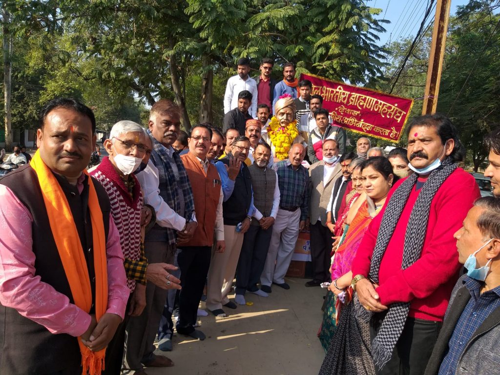 देवास। प्रतिवर्षानुसार अनुसार इस वर्ष भी अखिल भारतीय ब्राह्मण महासंघ ने पंडित मदन मोहन मालवीय और अटल बिहारी वाजपेयी की जन्मजयन्ती अ.भा. ब्राह्मण समाज अध्यक्ष संजय शुक्ला के नेतृत्व हर्षोल्लास से मनाई । युवा संघ प्रवक्ता पं. रोहित उपाध्याय ने बताया कि इस बार जन्म जयंती के उपलक्ष में एक विशेषता यह रही कि अखिल भारतीय ब्राह्मण महासंघ के आह्वान पर सभी समाज के गणमान्य नागरिक उपस्थित रहे। प्रात: 9.30 बजे सभी पंडित मदन मोहन मालवीय की प्रतिमा के पास इक_ा हुए तथा पंडित मालवीय जी की प्रतिमा को दुग्ध अभिषेक कर माल्यार्पण किया गया । इसके पश्चात पूर्व कैबिनेट मंत्री दीपक जोशी, पूर्व महापौर सुभाष शर्मा, वरिष्ठ कांग्रेसी नेता जयप्रकाश शास्त्री, महासंघ महिला अध्यक्ष यशोदा शर्मा , युवा संघ अध्यक्ष महेंद्र व्यास ने सभी को स्वच्छ भारत स्वस्थ भारत की शपथ दिलवाई । इसके बाद सभी ने बालगढ़ में स्थित पंडित अटल बिहारी वाजपेई जी की प्रतिमा पर माल्यार्पण किया। कार्यक्रम में विशेष रूप से पूर्व कैबिनेट मंत्री दीपक जोशी, पूर्व महापौर सुभाष शर्मा, पूर्व महासंघ अध्यक्ष रमेश व्यास , ओपी तिवारी , श्री पाठक, महिला मंडल , अध्यक्ष यशोदा शर्मा, विनीता व्यास , अंजू शर्मा, विनीता शर्मा, पंडित प्रयास गौतम , पंडित शंकर लाल शर्मा, पंडित डॉ वीके तिवारी , पंडित महेंद्र उपाध्याय, पंडित श्याम पेशकार , पंडित संतोष दुबे , पंडित टिंकू शुक्ला , पंडित समीर शर्मा, पंडित ओपी तिवारी, पंडित ओपी शर्मा ,पंडित गजानन चौबे, पंडित मुकेश शर्मा, पंडित किशोर दुबे , सुभाष पंड्या, श्रीकांत उपाध्याय, पं. के.के. शर्मा, पं. सुभाष दीक्षित, पं. गिरधारीलाल शर्मा, पं. गौरीशंकर चौबे, पं. ओ.पी. शर्मा, पं. सचिन जोशी, पं. रितेश त्रिपाठी, पं. नीरज व्यास, पंडित धर्मेंद्र मिश्रा , पंडित दिनेश तिवारी, पंडित देवकीनंदन समाधिया, पं. रघुनंदन समाधिया, पं. प्रवीण शर्मा, पं. रमेश त्रिवेदी, पं. संजय आचार्य, पं. दीपक मिश्रा, पं. प्रशांत शर्मा, पं. मुकेश शर्मा, पं. प्रमोद व्यास, पं. आनंद दुबे, प. अश्विन शर्मा, पं. मोहित पंड्या, पंडित विमल शर्मा, पंडित सुदर्शन दुबे, पंडित संजय दुबे, पंडित भरत व्यास , पं. पवन चौधरी, पंडित रोहित उपाध्याय, पंडित डॉ रितेश शर्मा पंडित गौरव दुबे , पंडित नयन कानूनगो , पं. छोटू पांडे, पंडित गोलू जोशी उपस्थित रहे । इसके पश्चात महासंघ के कोषाध्यक्ष श्री सतीश दुबे ने सभी का आभार व्यक्त किया