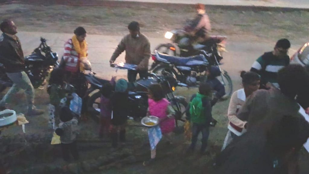 देवास। बावडिय़ा स्थित दीनदयाल अन्त्योदय रसोई पर संस्था सेल्फ वेलफेयर सोसायटी द्वारा मकर संक्रांति के शुभ अवसर पर हल्दी कुमकुम का आयोजन रखा गया। साथ ही गोमती नगर बस्ती में छोटे बच्चों को भोजन एवं तिल गुड़ के लड्डू के साथ मास्क, पेस्ट एवं पतंग भी वितरित किए गए। संस्था एवं रसोई संचालक रितेश उपाध्याय ने बताया कि हमारी संस्था सेल्फ वेलफेयर सोसायटी विगत 5 वर्षो से लगातार सेवा बस्ती जनहितैषी कार्य करते हुए अपनी सेवा प्रदान कर रही हैं। हल्दी कुमकुम के कार्यक्रम में विशेष उन महिला समूह को बुलाया गया जो अपने घर के कार्य के साथ-साथ बचत समूह चला रहे है एवं नगर निगम के साथ मिलकर अपनी सेवाय प्रदान कर रहे हैं। मकर संक्रांति के अवसर पर ऐ.डी.जे.मेडम श्रीमती निहारिका सिंह एवं ऐ.डी.जे. श्री मिश्रा सर ने हितग्राहियों के स्वादिष्ट भोजन हेतु अन्नदान किया। इस कार्यक्रम में सामाजिक दुरी का भी ध्यान रखा गया। इस अवसर पर विशेष रूप से नगर निगम से सिटी मैनेजर विशाल सर, संस्था सॉलिडरिडेड से पुर्वा मेडम, लिपि भार्गव, सचिन पंचोली, बरखा चंद्रवद, सविता राठौड़, इम्तियाज भाई, आशीष सोनी, नवीन, अनुराग शुक्ला आदि विशेष रूप से उपस्थित थे। आभार सय्यद तस्कीन अली ने माना।