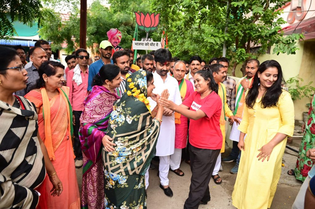 शुक्रवार को वार्ड 30, 31 व 32 में महाराज विक्रमसिंह पवार के साथ महापौर प्रत्याशी गीता दुर्गेश अग्रवाल ने सघन जनसंपर्क किया। यहां घर-घर से महाराज विक्रमसिंह पवार व महापौर प्रत्याशी श्रीमती अग्रवाल का तिलक लगाकर व पुष्पमाला पहनाकर मतदाताओं ने अभिनंदन किया। महापौर प्रत्याशी एवं महाराज के अपने वार्ड में आने पर कई लोगों ने घर की बॉलकनी से फूलों की बारिश भी की। यहां युवा मतदाताओं का उत्साह देखते ही बन रहा था। कई युवतियों ने महापौर प्रत्याशी श्रीमती अग्रवाल काे तिलक लगाया और कहा कि आप चुनाव में जीत के बाद युवाओं के उत्थान के लिए कार्य करें। युवा वर्ग आपके साथ हैं। युवाओं का जोश व उत्साह देख श्रीमती अग्रवाल ने उन्हें पूर्ण रूप से आश्वासित किया कि आप सभी के सहयोग से हम शहर का विकास करेंगे। युवा वर्ग को स्थानीय स्तर पर रोजगार प्राप्त हो इसके लिए हरसंभव प्रयास करेंगे। इन वार्डों की कई वरिष्ठ महिलाओं ने भी महाराज व महापौर प्रत्याशी को आशीर्वाद दिया। कुछ बुजुर्गों ने तो अपने वार्ड एवं शहर विकास के लिए खुलकर चर्चा भी की।