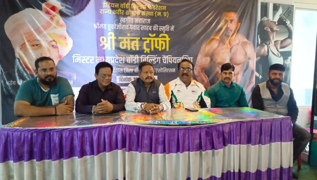मिस्टर एमपी (श्री मंत ट्राफी)व मिस्टर देवास बॉडीबिल्डिंगचैंपियनशिप का आयोजनप्रदेशभर के बॉडी बिल्डर लेंगे हिस्सादेवास। जिला बॉडी बिल्डिंग एसोसिएशन द्वारा आयोजित होने वाली मिस्टर एमपी श्री मंत ट्रॉफी व मिस्टर देवास बॉडी बिल्डिंग चैंपियनशिप को लेकर एक प्रेस वार्ता स्थानीय एडिक्शन जिम पर आयोजित की गयी।देवास जिला बॉडी बिल्डिंग एसो. के अध्यक्ष खुमान सिंह बैस ने बताया कि वार्ता को मध्यप्रदेश बॉडी बिल्डिंग एसोसिएशन के महासचिव अतिन तिवारी व लीगल एडवाइजर चंद्रपाल सिंह सोलंकी (छोटू),उपाध्यक्ष अकबर शेख(अज्जू) ने सम्बोधित करते हुए चैंपियनशिप के बारे में विस्तार से पत्रकार बंधुओ को जानकारी दी।18 दिसम्बर 2022 को सयाजी द्वार पर प्रदेश स्तरीय बॉडी बिल्डिंग चैंपियनशिप का आयोजन होगा। चैंपियनशिप में सर्वप्रथम मिस्टर देवास और बाद में मिस्टर एमपी का आयोजन होगा। मिस्टर एमपी में 1 लाख 31 हजार व मिस्टर देवास में 71 हजार का का केश प्राइस खिलाड़ियो(बॉडीबिल्डर)को दिया जाएगा, साथ ही कई आकर्षित इनाम विजेता खिलाड़ियों को दिए जाएंगे।मिस्टर एमपी चैंपियनशिप में 35 जिलों से लगभग 200 से 250 बॉडी बिल्डर भाग लेंगे,जिले के सभी बॉडीबिल्डर भी चैंपियनशिप में मांसपेशियों का प्रदर्शन करेंगे।इस अवसर पर देवास जिला बॉडी बिल्डिंग एसो.के चेयरमेन जितेंद्र सिंह पंवार,सचिव वीरेंद्र ठाकुर, मंदीप सिंह पंवार, रेहान शेख , राहुल गोलियां ,खालिक शेख, टीना राठौड़, सम्राट सोनी, जीशान शेख, रोहन वर्मा, अंकित दुबे,प्रमोद चौहान, निखिल ठाकुर, मालिक शेख, भास्कर सिंह बैस, रोहित सोनी, अजय पांचाल सहित अन्य सदस्य मौजूद रहे। उक्त जानकारी मीडिया प्रभारी चेतन राठौड़ ने दी।