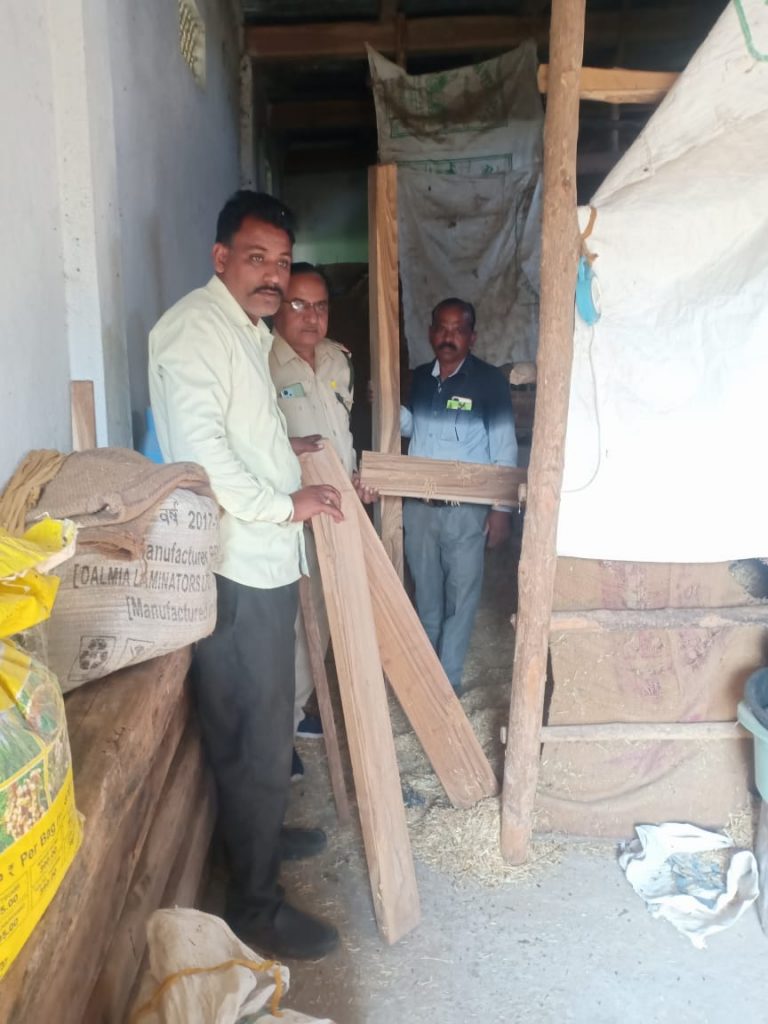 सन 2022 के अंतिम पखवाड़े में वन विभाग को मीडिया तक पहुंची खबरों की भनक लगते ही जमीनी स्तर पर दबिश देना शुरू कर दी जिसके अंतर्गत खातेगांव रेंज के बकवास चौकी के अंतर्गत ग्राम चंद्रपुरा के निवासी कुख्यात तस्कर रामदीन पिता गेंदालाल के निवास से हजारों में नहीं लाखों रुपए की इमारती सागवान लकड़ी से बने फर्नीचर के साथ विभिन्न फर्नीचर के साइज करीब 3 आईसर भरकर वन अमले ने जप्त किया है।*पंडित प्रमोद मेहता/खुमान सिंह बैस*कन्नौद* उपवन अधिकारी श्री शंकर लाल यादव ने दी जानकारी के अनुसार जिला वन मंडल अधिकारी के निर्देश पर मेरे मार्गदर्शन में खातेगांव के वन परीक्षेत्र अधिकारी वंदना ठाकुर और उनके वन कर्मचारियों के साथ मच वास चौकी के पास ग्राम चंद्रपुरा में आज सुबह दी गई दबिश में तीन आईसर भरकर भारी मात्रा में पीला सोना के नाम से जाना जाने वाला बहु कीमती सागवान वृक्ष के फर्नीचर बनाने के उपकरण फर्नीचर के लिए तैयार किए गए साइज दरवाजों की जोड़ दरवाजे की चौखट दीवान आदि सामान जप्त करने में वन विभाग ने सफलता प्राप्त कि है। यह स्मरण रहे जी क्षेत्र से आज जब्ती की कार्यवाही की गई है उसी क्षेत्र में कल साप्ताहिक चलता चक्र के प्रधान संपादक तथा नवभारत के प्रतिनिधि श्री महेश साहू ने आसपास के जंगलों के भारी विनाश का वीडियो बना कर लाए थे उसकी जानकारी वन विभाग तक पहुंच चुकी थी ।हमने जंगल मैं घुमकर जब देखा तो आंखें फटी की फटी रह गई कई किलोमीटर तक सघन घने जंगलों की जगह खाली मैदान दिखाई दे रहे थे ।वन विनाश के सबूत मिटाने के लिए सांगवान बृक्षो के थूट जला दिया गया वन विनाश का भयावह नजारा हमने अपने अपने केमरे मैं कैद कर लाते थे इस बात को लेकर वन अधिकारी को जानकारी मिल गई थी उसी का परिणाम है शुक्रवार सुबह से वन अधिकारियो को मुखबिर की खबर पर वन विनाश के जिम्मेदार अधिकारियों को दबिश देने भेजा जहां से एक नहीं दो नहीं तीन आईसर भरकर फर्नीचर और उसके साथ फर्नीचर बनाने के औजार मशीनें और भारी मात्रा में फर्नीचर बनाने के साइज बलम लेने जंप्त करने में सफलता प्राप्त कि है। समाचार लिखे जाने तक वन विभाग का अमला जब तक की गई लकड़ी का गुणा भाग करने में लगा हुआ है बाजार में जप्त किए गए लकड़ी तथा फर्नीचर की कीमत लाखों रुपए में आंकी जा रही है। वन विभाग ने जब से चार दैनिक वेतन भोगी श्रमिको को निकाला है जब से इनकी पोल मिडिया से लेकर उच्च अधिकारियों तक पहुंच रही है उनकी बद्दुआ का परिणाम है जो एक ही स्थान से लाखों रुपए किमत की चिरान और फर्नीचर जप्त हो रहे हैं यह आरोपी रामदिन कितने साल से वन विनाश कर रहा था इसके पैर इन्दौर,आष्टा,सिहोर,कन्नौद, खातेगांव सहित अनेक शहरी में माल सप्लाय करता था इसकी जांच उच्च स्तर पर इसके घर से डायरी जप्त कर करना चाहिए जिस