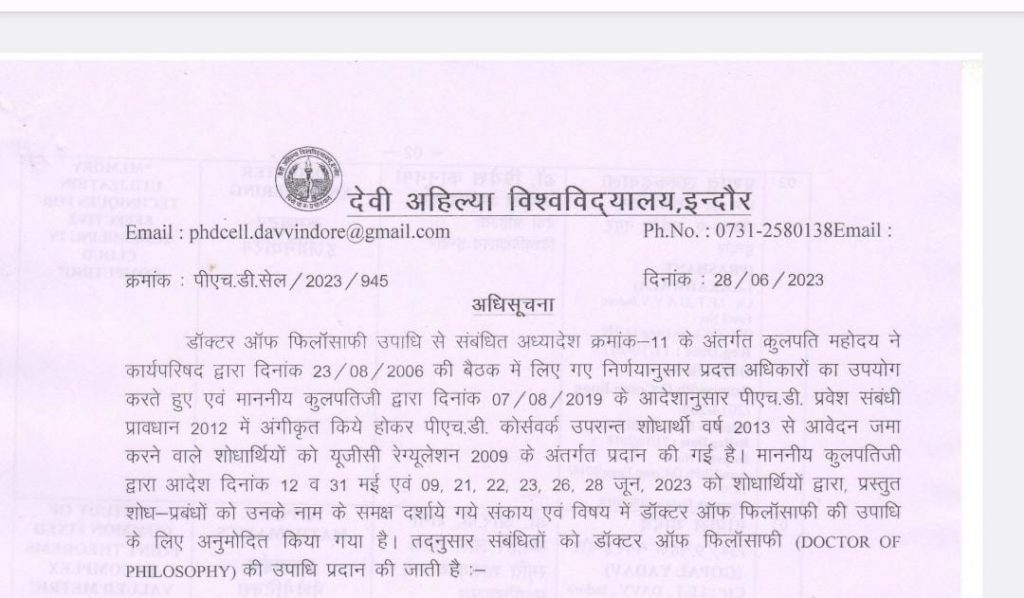 देवास। मां जिनवाणी कालेज आफ लीगल स्टडीज सोनकच्छ के सहायक प्राध्यापक रोहित पवार पिता प्रेमचंद पवार निवासी देवास ने साइबर लॉ में एक विशिष्ट उपलब्धि हासिल की है। रोहित पवार ने डॉ. दरवेश भंडारी प्राचार्य एम.बी. खालसा लॉ कालेज के निर्देशन में साइबर लॉ में पीएचडी की उपाधि प्राप्त की है। स्कूल ऑफ लॉ इंदौर से एलएलएम उत्तीर्ण करने के बाद रोहित पवार ने शिक्षा के क्षेत्र में कदम आगे बढ़ाए और मां जिनवाणी कालेज ऑफ लीगल स्टडीज में अध्यापन कार्य प्रारंभ किया। साथ ही साइबर लॉ में डॉ. दरवेश भंडारी के निर्देशन में अपना शोध कार्य प्रारंभ किया। विषय संबंधी विभिन्न जानकारी एकत्रित करने के बाद रोहित पवार ने शोध पत्र देवी अहिल्या विवि इंदौर में प्रस्तुत किया, जहां से पवार को पिछले दिनों अपने शोध के लिए डॉक्टर ऑफ फिलॉसाफी की उपाधि प्रदान की गई। रोहित पवार की इस उपलब्धि पर परिजनों, स्नेहीजनों व समाजजनों ने बधाई प्रेषित की है।