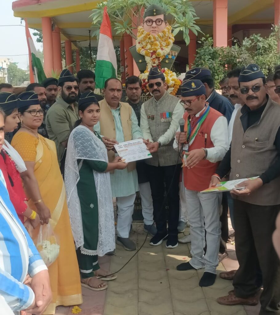 नेताजी सुभाष चंद्र बोस जयंती देवास राष्ट्रीय सैनिक संस्था देवास जिला इकाई की ओर से आज सेंट्रल ग्राउंड जवाहर नगर में तिरंगा यात्रा के साथ में नेताजी सुभाष चंद्र बोस की प्रतिमा पर माला अर्पण करके नेताजी सुभाष चंद्र बोस के सपनों को साकार करने की शपथ ली गई राष्ट्रीय सैनिक संस्था के द्वारा जिसमें जिला अध्यक्ष भारतीय जनता पार्टी राय सिंह सेंधव जी मुख्य अतिथि के रूप में उपस्थित हुए जिसमें इंदौर से राष्ट्रीय सैनिक संस्था जिला सचिव रानी मालवीय अध्यक्ष और टोल प्रभारी पूर्व सैनिक विशाल मेहता जी अपनी टीम के साथ में उपस्थित हुए कार्यक्रम में विशेष तौर पर युवा महिला इकाई जिला अध्यक्ष कुमारी रीना पैंटोटिया एवं उपाध्यक्ष नीतू प्रजापति ,सचिव कार्यक्रम में जिला संयोजक जीतू रघुवंशी देवास शहर अध्यक्ष अप्रेस मजूमदार विशेष तौर पर इंदौर अध्यक्ष पूर्व सैनिक विशाल मेहता जी अपनी टीम के साथ में यह जानकारी पंडित मनोज मिश्रा ने दी एउपस्थित हुए राष्ट्रीय सैनिक संस्था के प्रदेश जनरल सेक्रेटरी पंडित मनोज मिश्रा ने सभी देशभक्ति नागरिकों का फौजियों का एवं जनमानस का आभार व्यक्त किया पंडित मनोज मिश्रा जी ने कहा है की प्रदेश के हर जिले में पूर्ण रूप से गठन करके हर जन जन तक घर-घर तक राष्ट्रीय सैनिक संस्था का हर एक सिपाही नियुक्त किया जाएगा