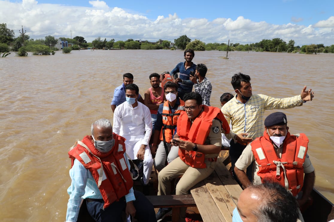 पुलिस अधीक्षक डॉ. सिंह ने नेमावर में एक व्यक्ति जिसे कमर में परेशानी थी उसकी रेस्यूा। कर मदद की तथा उसे नाव द्वारा सुरक्षित स्थान पर पहुंचाया।