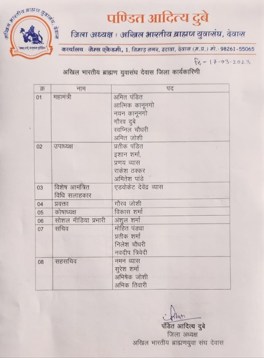 चावड़ा देवास नगर कालेज इकाई अध्यक्ष नियुक्त