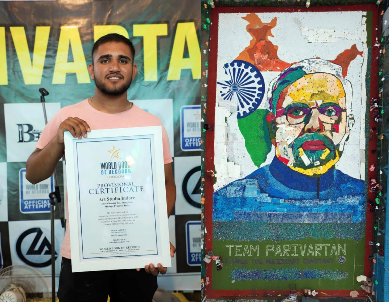 टीम परिवर्तन ने 6 लाख बेकार ढक्कनों से बनाया पीएम का पोट्रेट, वल्र्ड बुक ऑफ रिकॉर्डस लंदन ने दिया वल्र्ड रिकॉर्ड का प्रमाण पत्र