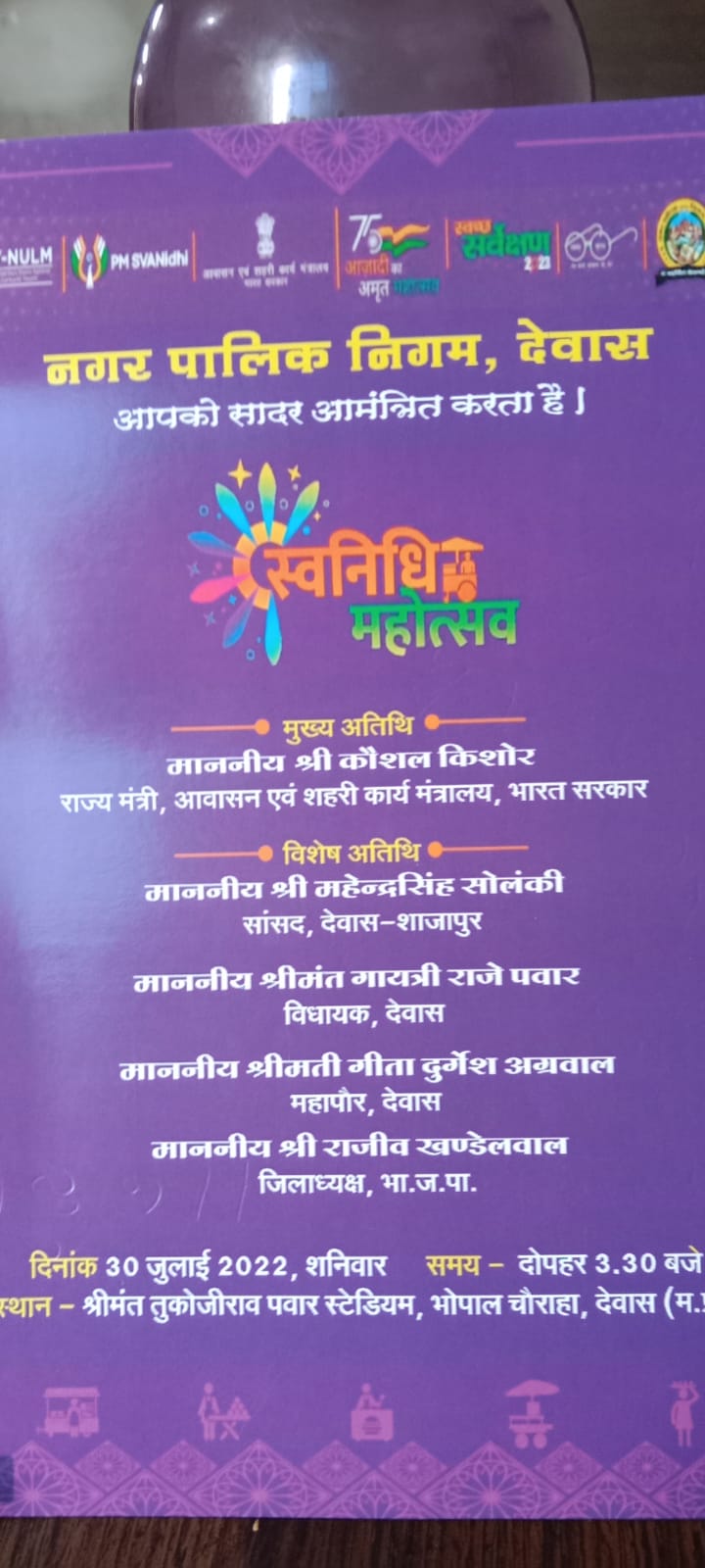 देवास। नगर पालिक निगम देवास द्वारा स्वनिधि महोत्सव मनाया गया। इसका मुख्य आयोजन 30 जुलाई को…